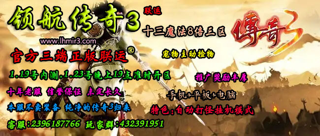 | 陪伴传奇三积分新区 | 01月12日内测 01月14日开区 | 中国多线 | 42魔 | 经典积分版本人多耐玩 |