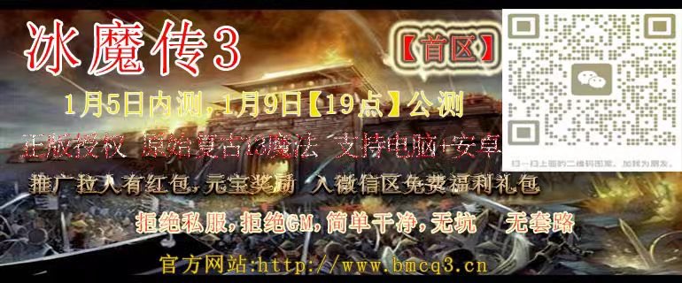 | 冰魔传3█首区█1倍仿光通 | 01月06日内测 01月09日开区 | 中国多线 | 13魔 |